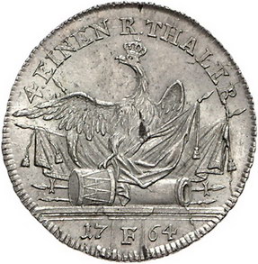 Los-Nummer: Auktion 51 - 424 Altdeutsche Münzen und Medaillen Brandenburg-Preußen Friedrich II. 1740-1786, 1/4 Taler 1764 F, Magdeburg. Olding 126. Kleine Schrötlingsfehler, vorzüglich Schätzpreis: 200,- Zuschlag: unverkauft |