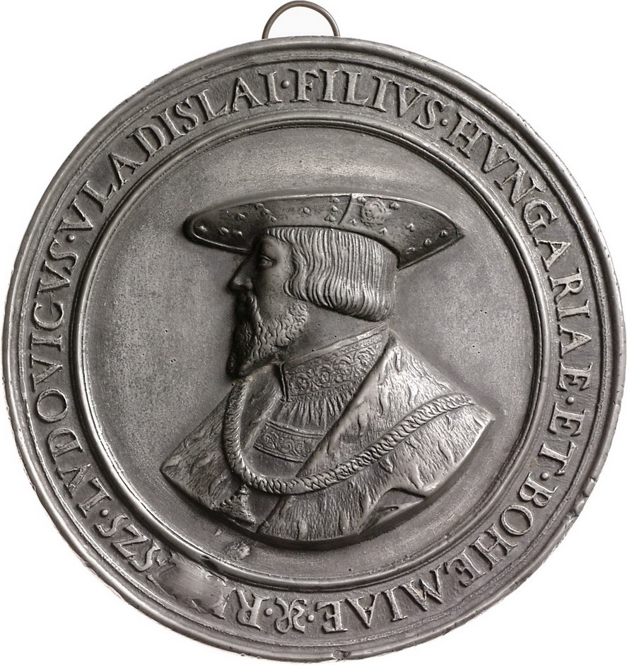 Los-Nummer: Auktion 51 - 4063 Ausländische Münzen und Medaillen Ungarn Ludwig II. 1516-1526, Einseitiges Zinngussmedaillon#0Medaille# o.J. nach einem Steinmodell in der Art des H. Daucher aus dem Jahre 1525. Brustbild mit Ordenskette nach links. Slg. Horsky 722 (Br). 127,5 mm. Repariertes Loch oder Gussfehler, Randfehler, vorzüglich Schätzpreis: 200,- Zuschlag: unverkauft |