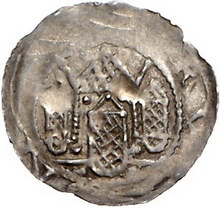 Los-Nummer: Auktion 51 - 191 Altdeutsche Münzen und Medaillen Brandenburg-Preußen Przibislaw Heinrich 1127-1150, Dünnpfennig, Brandenburg. 0,88 g. Fürst mit Fahne reitet nach rechts, dahinter Kreuz / Viertürmiges Gebäude. Bahrfeldt 1, Slg. Bonhoff 783. Prägeschwäche, sehr schön + Schätzpreis: 150,- Zuschlag: 380,- |