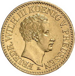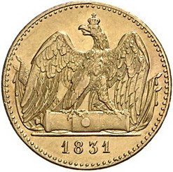 Los-Nummer: Auktion 51 - 526 Altdeutsche Münzen und Medaillen Brandenburg-Preußen Friedrich Wilhelm III. 1797-1840, Doppelter Friedrichs d'or 1831 A. Jaeger 110, AKS 2, Divo/Schramm 161 , Friedberg 2428. GOLD. Fast vorzüglich Schätzpreis: 1000,- Zuschlag: 1500,- |