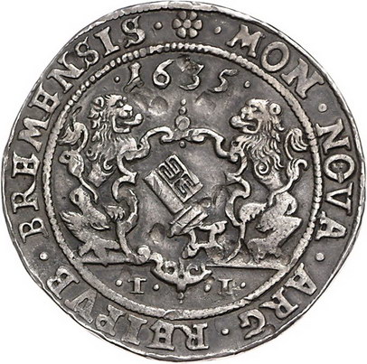 Los-Nummer: Auktion 51 - 697 Altdeutsche Münzen und Medaillen Bremen, Stadt Taler 1635 TI. Jungk 474, Davenport 5096 , Slg. Danziger 411. Sehr schön Schätzpreis: 500,- Zuschlag: 600,- |