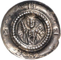 Los-Nummer: Auktion 51 - 826 Altdeutsche Münzen und Medaillen Fulda, Abtei Heinrich V. 1288-1313, Brakteat. 0,40 g. Hüftbild des Abtes mit Palmzweig und Buch zwischen zwei Mühlsteinen, auf dem Rand N-E-N-E. Berger 2303, Slg. Bonhoff 1380, Slg. Löbbecke 879 , Kalvelage-Schrock vergl. 10 (Hameln). Sehr schön - vorzüglich Schätzpreis: 100,- Zuschlag: 110,- |