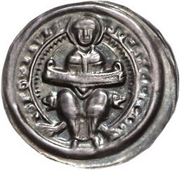 Los-Nummer: Auktion 51 - 848 Altdeutsche Münzen und Medaillen Halberstadt, Bistum Gero von Schermbke 1160-1177, Brakteat. 0,76 g. SC-STCPHAN-IS ROTHIIVIO St. Stephan sitzt von vorn mit ausgebreiteter Manipel. Slg. Bonhoff 474 ff, Berger 1308 ff. Sehr schön - vorzüglich Schätzpreis: 150,- Zuschlag: 180,- |
