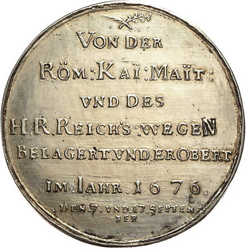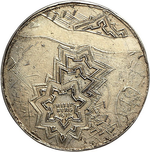 Los-Nummer: Auktion 51 - 1794 Altdeutsche Münzen und Medaillen Speyer-Philippsburg, Stadt Medaille 1676, von Joh. Linck? Auf die Einnahme der Stadt durch die kaiserlichen Truppen. Plan der Stadt mit Laufgräben und Rheinschanze, im Hintergrund der Rhein / Schrift. Berstett 522 , Slg. Julius 156. 51,5 mm, 35,90 g. Altvergoldet. Felder bearbeitet, sehr schön Schätzpreis: 150,- Zuschlag: 240,- |