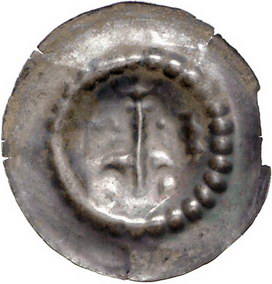 Los-Nummer: Auktion 51 - 1105 Altdeutsche Münzen und Medaillen Mühlhausen, königliche Münzstätte Adolf von Nassau 1292-1298, Brakteat. 0,56 g. König sitzt von vorn mit Kreuz und Mühleisen, auf dem Rand A - Kreuz - A - Kreuz (nicht erkennbar). Slg. Bonhoff 1224, Slg. Löbbecke 725 (Albrecht), Slg. Hohenstaufen 910 (Albrecht) , Slg. Friedensburg 2064. Schwach geprägt. Sehr schön Schätzpreis: 200,- Zuschlag: 190,- |