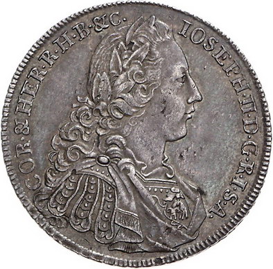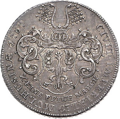 Los-Nummer: Auktion 51 - 1108 Altdeutsche Münzen und Medaillen Mühlhausen, Stadt Taler 1767. Belorbeertes, drapiertes und geharnischtes Brustbild Kaiser Josephs II. nach rechts / Geschweifter und behelmter Adlerschild. Behr 50, Jaeger 7, Davenport 2462. Schöne Patina. Fast vorzüglich Schätzpreis: 1000,- Zuschlag: 810,- |
