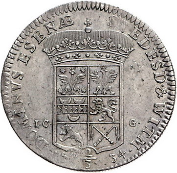 Los-Nummer: Auktion 51 - 1346 Altdeutsche Münzen und Medaillen Ostfriesland Georg Albrecht 1708-1734, 2/3 Taler 1734, Esens. Knyphausen 6596, Davenport 732. Winz. Randfehler, sehr schön - vorzüglich Schätzpreis: 600,- Zuschlag: 550,- |