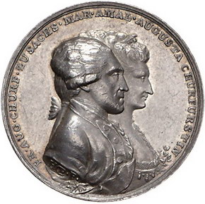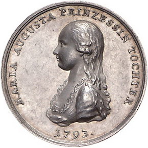 Los-Nummer: Auktion 51 - 1581 Altdeutsche Münzen und Medaillen Sachsen-Albertinische Linie Friedrich August III. 1763-1806, Medaille 1793, von Hoeckner. Zum Besten der Armenschulen. Die Brustbilder des Königs und seiner Gemahlin nach rechts / Das Brustbild der Tochter nach links. Slg. Merseburger 1999 , Slg. Engelhardt 1689, Schuler 136. 29,5 mm, 14,23 g. Vorzüglich Schätzpreis: 100,- Zuschlag: 150,- |