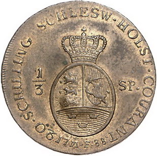 Los-Nummer: Auktion 51 - 1750 Altdeutsche Münzen und Medaillen Schleswig-Holstein, königliche Linie Christian VII. 1766-1808, Messing Normalgewicht des 1/3 Talers 1788 MF, Altona. Gekröntes Wappen, Wert und Jahreszahl / leer, Einstempelung gekröntes Monogramm. Lange zu 150. Sehr schön - vorzüglich Schätzpreis: 100,- Zuschlag: 240,- |