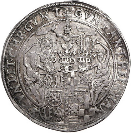 Los-Nummer: Auktion 51 - 1781 Altdeutsche Münzen und Medaillen Schwarzburg-Sondershausen Günter XLII., Anton Heinrich, Johann Günther II. und Christian Günther I. 1595-1638, Taler 1623. Fischer 238, Davenport 7680. Kl. Henkelspur, sehr schön + Schätzpreis: 300,- Zuschlag: 400,- |