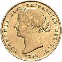 Los-Nummer: Auktion 51 - 2814 Ausländische Münzen und Medaillen Australien Victoria 1837-1901, Sovereign 1866, Sydney. Friedberg 10, K.M. 4. GOLD. Winz. Randfehler, sehr schön - vorzüglich Schätzpreis: 250,- Zuschlag: unverkauft |