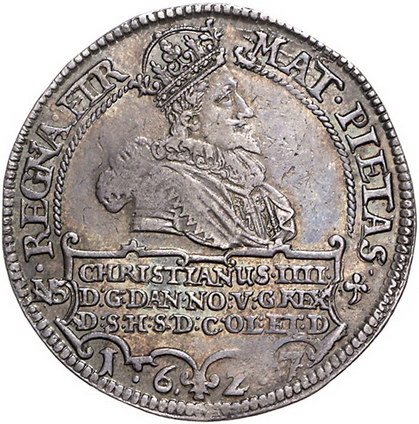 Los-Nummer: Auktion 51 - 2945 Ausländische Münzen und Medaillen Dänemark Christian IV. 1588-1648, Speciedaler 1627 NS. Hede 55 A, Davenport 3524. Schöne Patina. Sehr schön - vorzüglich Schätzpreis: 750,- Zuschlag: 925,- |
