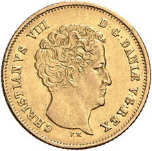 Los-Nummer: Auktion 51 - 2963 Ausländische Münzen und Medaillen Dänemark Christian VIII. 1839-1848, Christian d'or 1845 FF. Hede 2, Friedberg 290. GOLD. Sehr schön - vorzüglich Schätzpreis: 750,- Zuschlag: 1550,- |