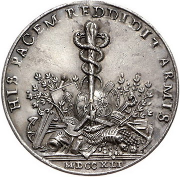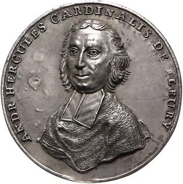 Los-Nummer: Auktion 51 - 3001 Ausländische Münzen und Medaillen Frankreich Ludwig XV. 1715-1774, Versilberte Bronzemedaille 1741. Auf Kardinal André Hercules de Fleury, Premierminister Ludwigs XV. und dessen zu Wien ausgehandelten Waffenstillstand, der den polnischen Erbfolgekrieg beendete. Brustbild halblinks / Herkuleskeule mit zwei Schlangen. Wurzbach 2150. 37 mm. Hohes Relief. Fast vorzüglich Schätzpreis: 125,- Zuschlag: unverkauft |