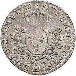 Los-Nummer: Auktion 51 - 3005 Ausländische Münzen und Medaillen Frankreich Ludwig XVI. 1774-1793, 1/5 Ecu 1788 H, La Rochelle. Gadoury 354. Schöne Patina. Kl. Kratzer, sehr schön - vorzüglich Schätzpreis: 75,- Zuschlag: 110,- |