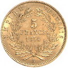 Los-Nummer: Auktion 51 - 3030 Ausländische Münzen und Medaillen Frankreich Napoleon III. 1852-1870, 5 Francs 1854 A, Paris. Gadoury 1000, Friedberg 578. GOLD. Vorzüglich Schätzpreis: 125,- Zuschlag: 120,- |