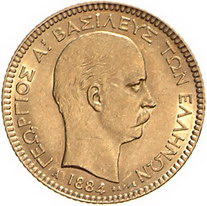 Los-Nummer: Auktion 51 - 3063 Ausländische Münzen und Medaillen Griechenland Georg I. 1863-1913, 20 Drachmen 1884, Paris. Divo 47, Friedberg 18. GOLD. Fast vorzüglich Schätzpreis: 175,- Zuschlag: 170,- |
