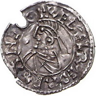 Los-Nummer: Auktion 51 - 3067 Ausländische Münzen und Medaillen Großbritannien Aethelred II. 978-1016, Penny, Winchester. 1,15 g. First small cross type. North 764, Seaby 1143. Randausbruch, sehr schön Schätzpreis: 150,- Zuschlag: 120,- |
