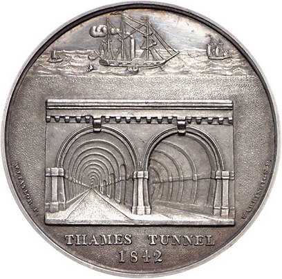 Los-Nummer: Auktion 51 - 3118 Ausländische Münzen und Medaillen Großbritannien Victoria 1837-1901, Medaille 1842, von Taylor. Auf die Fertigstellung des Themse-Tunnels. Kopf des Architekten Sir Isambart Marc Brunel nach links / Ansicht des Tunnels, oben Segelschiff. Eimer 1372. 41,5 mm, 39,26 g. Vorzüglich Schätzpreis: 100,- Zuschlag: 145,- |