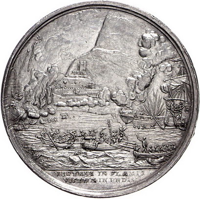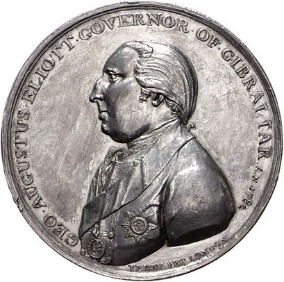 Los-Nummer: Auktion 51 - 3122 Ausländische Münzen und Medaillen Großbritannien-Gibraltar Medaille 1782, von Terry. Auf George Augustus Elliot und die erfolgreiche Verteidigung Gibraltars. Brustbild nach links / Ansicht Gibraltars, im Vordergrund Darstellung der Schlacht. Forrer VI, Seite 48. 42 mm, 26,50 g. Kl. Randfehler, sehr schön Schätzpreis: 150,- Zuschlag: 235,- |