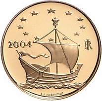 Los-Nummer: Auktion 51 - 3170 Ausländische Münzen und Medaillen Italien-Königreich Republik. Ab 1946, 20 Euro 2004. Europäische Kunst. Segelschiff. GOLD. Polierte Platte Schätzpreis: 200,- Zuschlag: 170,- |