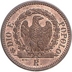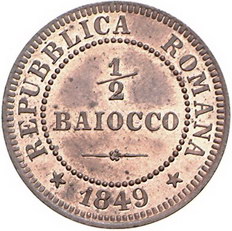 Los-Nummer: Auktion 51 - 3234 Ausländische Münzen und Medaillen Italien-Römische Republik Cu 1/2 Baiocchi 1849, Rom. CNI 12, Pagani 345. Prachtexemplar. Fast Stempelglanz Schätzpreis: 500,- Zuschlag: unverkauft |