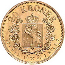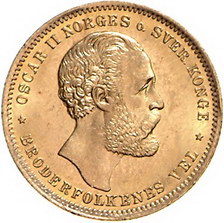 Los-Nummer: Auktion 51 - 3588 Ausländische Münzen und Medaillen Norwegen Oscar II. 1872-1905, 20 Kronen 1902. ABH 9, Friedberg 17. GOLD. Vorzüglich - Stempelglanz Schätzpreis: 400,- Zuschlag: 430,- |