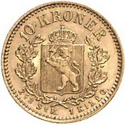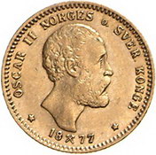 Los-Nummer: Auktion 51 - 3589 Ausländische Münzen und Medaillen Norwegen Oscar II. 1872-1905, 10 Kronen 1877. ABH 11, Friedberg 18. GOLD. Sehr schön Schätzpreis: 1000,- Zuschlag: 2000,- |