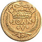 Los-Nummer: Auktion 51 - 3649 Ausländische Münzen und Medaillen Portugal Joao V. 1706-1750, 1/2 Escudo 1744. 400 Reis 1722. Friedberg 92, 100. 2 Stück. GOLD. Schön - sehr schön, sehr schön Schätzpreis: 125,- Zuschlag: 155,- |