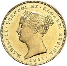 Los-Nummer: Auktion 51 - 3651 Ausländische Münzen und Medaillen Portugal Maria II. 1834-1853, 5000 Reis 1851. Gomes 45.03, Friedberg 142. GOLD. Vorzüglich - Stempelglanz Schätzpreis: 1000,- Zuschlag: 900,- |