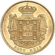 Los-Nummer: Auktion 51 - 3653 Ausländische Münzen und Medaillen Portugal Luis I. 1861-1889, 5000 Reis 1876. Friedberg 153. GOLD. Vorzüglich - Stempelglanz Schätzpreis: 300,- Zuschlag: 640,- |