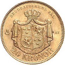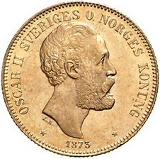 Los-Nummer: Auktion 51 - 3956 Ausländische Münzen und Medaillen Schweden Oskar II. 1872-1907, 20 Kronen 1873. S.M. 1, Friedberg 93. GOLD. Vorzüglich Schätzpreis: 200,- Zuschlag: 285,- |