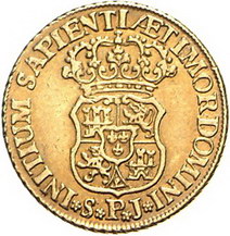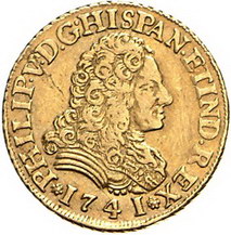 Los-Nummer: Auktion 51 - 4013 Ausländische Münzen und Medaillen Spanien Philipp V. 1700-1746, 2 Escudos 1741 S/PJ, Sevilla. Calicó/Trigo 301, Friedberg 236. GOLD. Sehr schön Schätzpreis: 250,- Zuschlag: 360,- |