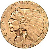 Los-Nummer: Auktion 51 - 4073 Ausländische Münzen und Medaillen Vereinigte Staaten von Amerika 2 1/2 Dollars 1909. Indian Head. Friedberg 120. GOLD. Sehr schön - vorzüglich Schätzpreis: 125,- Zuschlag: 185,- |
