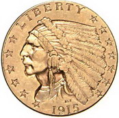 Los-Nummer: Auktion 51 - 4076 Ausländische Münzen und Medaillen Vereinigte Staaten von Amerika 2 1/2 Dollars 1915. Indian Head. Friedberg 120. GOLD. Sehr schön - vorzüglich Schätzpreis: 125,- Zuschlag: 300,- |