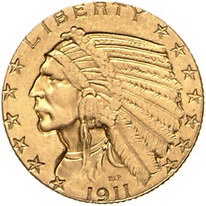 Los-Nummer: Auktion 51 - 4084 Ausländische Münzen und Medaillen Vereinigte Staaten von Amerika 5 Dollars 1911. Indian Head. Friedberg 148. GOLD. Sehr schön - vorzüglich Schätzpreis: 150,- Zuschlag: 310,- |