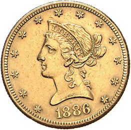 Los-Nummer: Auktion 51 - 4086 Ausländische Münzen und Medaillen Vereinigte Staaten von Amerika 10 Dollars 1886 S. Friedberg 160. GOLD. Sehr schön - vorzüglich Schätzpreis: 300,- Zuschlag: 330,- |