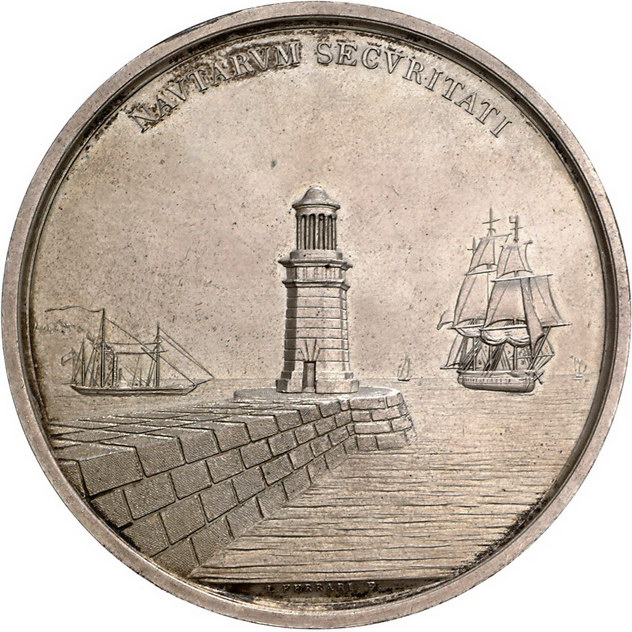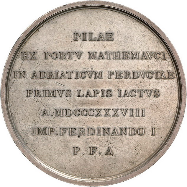 Los-Nummer: Auktion 51 - 2210 Haus Habsburg Haus Habsburg Ferdinand I. 1835-1848, Versilberte Bronzemedaille 1838, von Ferrari. Auf den Bau des Leuchtfeuers Molo in der Hafeneinfahrt von Triest. Damm mit Leuchtfeuer, im Hintergrund zwei Schiffe / Sieben Zeilen Schrift. Slg. Montenuovo 2588. 65 mm. Sehr schön - vorzüglich Schätzpreis: 125,- Zuschlag: 120,- |