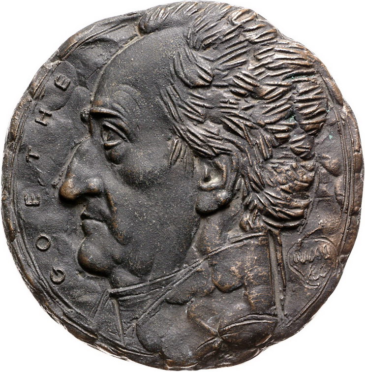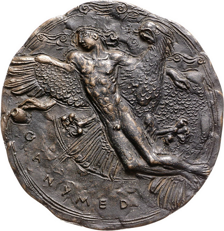 Los-Nummer: Auktion 51 - 2311 Medaillen Kunstmedaillen Nuss, Fritz Bronzegussmedaille 1980. Auf Johann Wolfgang von Goethe. Kopf nach links / Ganymed als schlanker Jüngling vom Adler des Zeus empor getragen. Medaillenkabinett Nr. 5/2. 115 mm. Vorzüglich Schätzpreis: 150,- Zuschlag: 175,- |
