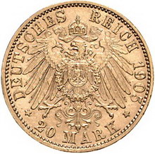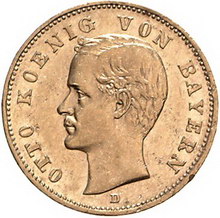 Los-Nummer: Auktion 51 - 2595 Münzen des Deutschen Kaiserreichs Bayern Otto 1886-1913, 20 Mark 1905 D. Jaeger 200. GOLD. Sehr schön Schätzpreis: 150,- Zuschlag: 195,- |