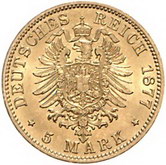 Los-Nummer: Auktion 51 - 2640 Münzen des Deutschen Kaiserreichs Preußen Wilhelm I. 1861-1888, 5 Mark 1877 A. Jaeger 244. GOLD. Vorzüglich + Schätzpreis: 200,- Zuschlag: unverkauft |