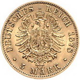 Los-Nummer: Auktion 51 - 2641 Münzen des Deutschen Kaiserreichs Preußen Wilhelm I. 1861-1888, 5 Mark 1878 A. Jaeger 244. GOLD. Vorzüglich Schätzpreis: 150,- Zuschlag: unverkauft |