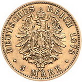 Los-Nummer: Auktion 51 - 2642 Münzen des Deutschen Kaiserreichs Preußen Wilhelm I. 1861-1888, 5 Mark 1878 A. Jaeger 244. GOLD. Sehr schön Schätzpreis: 150,- Zuschlag: unverkauft |