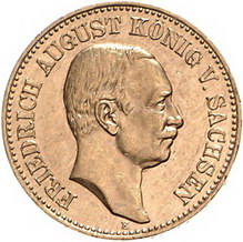 Los-Nummer: Auktion 51 - 2689 Münzen des Deutschen Kaiserreichs Sachsen Friedrich August III. 1904-1918, 20 Mark 1905 E. Jaeger 268. GOLD. Vorzüglich Schätzpreis: 175,- Zuschlag: unverkauft |