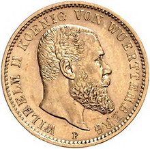 Los-Nummer: Auktion 51 - 2738 Münzen des Deutschen Kaiserreichs Württemberg Wilhelm II. 1891-1918, 20 Mark 1900 F. Jaeger 296. GOLD. Sehr schön - vorzüglich Schätzpreis: 150,- Zuschlag: unverkauft |