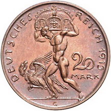 Los-Nummer: Auktion 51 - 2748 Proben Kaiserreich Bayern, 20 Mark 1913. 10 Mark 1913. 5 Mark 1913. 3 Mark 1913. 2 Mark 1913. Kupfer. Schaaf 202, 202 a, 51-53. 5 Stück. Vorzüglich - Stempelglanz Schätzpreis: 200,- Zuschlag: unverkauft |