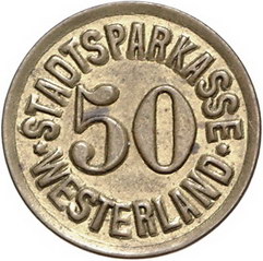 Los-Nummer: Auktion 51 - 2786 Marken und Zeichen Westerland/Sylt Einseitige Proben zu 50, 20 und 10 Pfennig o.J. (um 1917/18) der Stadtsparkasse Westerland. Menzel -. 3 Stück. Vorzüglich Schätzpreis: 150,- Zuschlag: unverkauft |