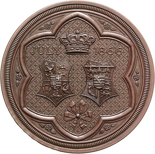 Los-Nummer: Auktion 51 - 1763 Altdeutsche Münzen und Medaillen Schleswig-Holstein-Sonderburg-Augustenburg Friedrich Christian Karl August, Prinz *1831 Augustenburg, Bronzemedaille 1866, von Wyon. Auf die Hochzeit von Prinz Christian und Helena von England. Zwei Büsten nach links / Zwei Wappen unter Krone. Lange 696. 64 mm. Vorzüglich Schätzpreis: 125,- Zuschlag: 170,- |