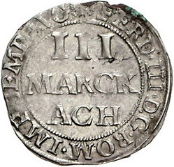 Los-Nummer: Auktion 51 - 33 Altdeutsche Münzen und Medaillen Aachen Städtische Prägungen, 3 Mark 1639. Menadier 221. Sehr schön + Schätzpreis: 150,- Zuschlag: 330,- |