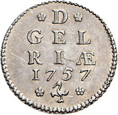 Los-Nummer: Auktion 51 - 3498 Ausländische Münzen und Medaillen Niederlande-Geldern, Provinz Silberabschlag von den Stempeln des Duits 1757. Verkade 20/1, K.M. zu 93 a, Purmer vergl. Ge 117.1 , CNM 1.12.154. 3,82 g. Vorzüglich - Stempelglanz Schätzpreis: 150,- Zuschlag: 140,- |